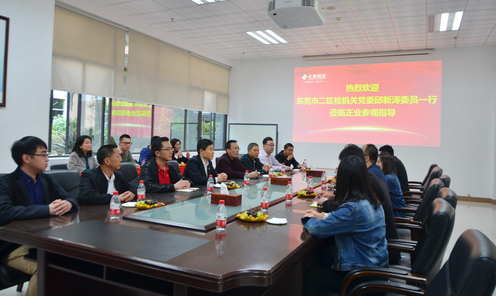 1月25日,为走进、了解和支持民营企业党建工作,东莞市二区检机关党委邱新涛委员一行20余人莅临花季传媒黄版APP下载科技进行参观考察交流。花季传媒黄版APP下载科技总裁办主任雷卓林、总裁办品牌部经理周亮等领导热情接待了来访嘉宾。