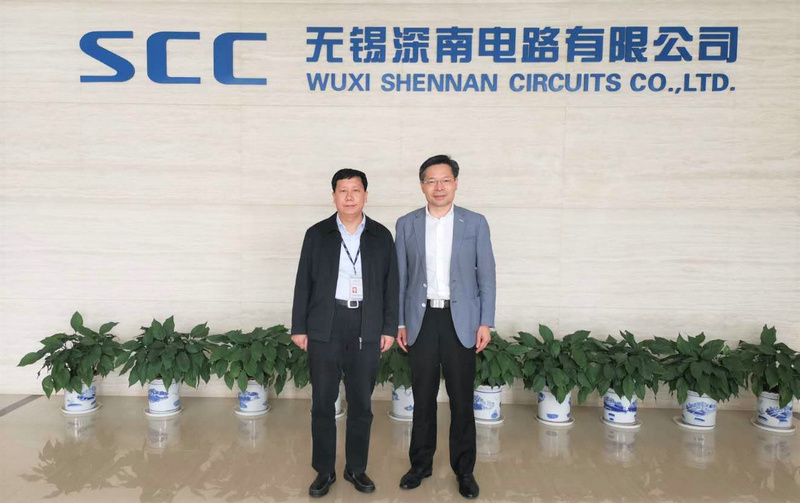 ▲集团董事长徐地华(右)与深南电路董事长杨之诚(左)进行战略合作深度交流