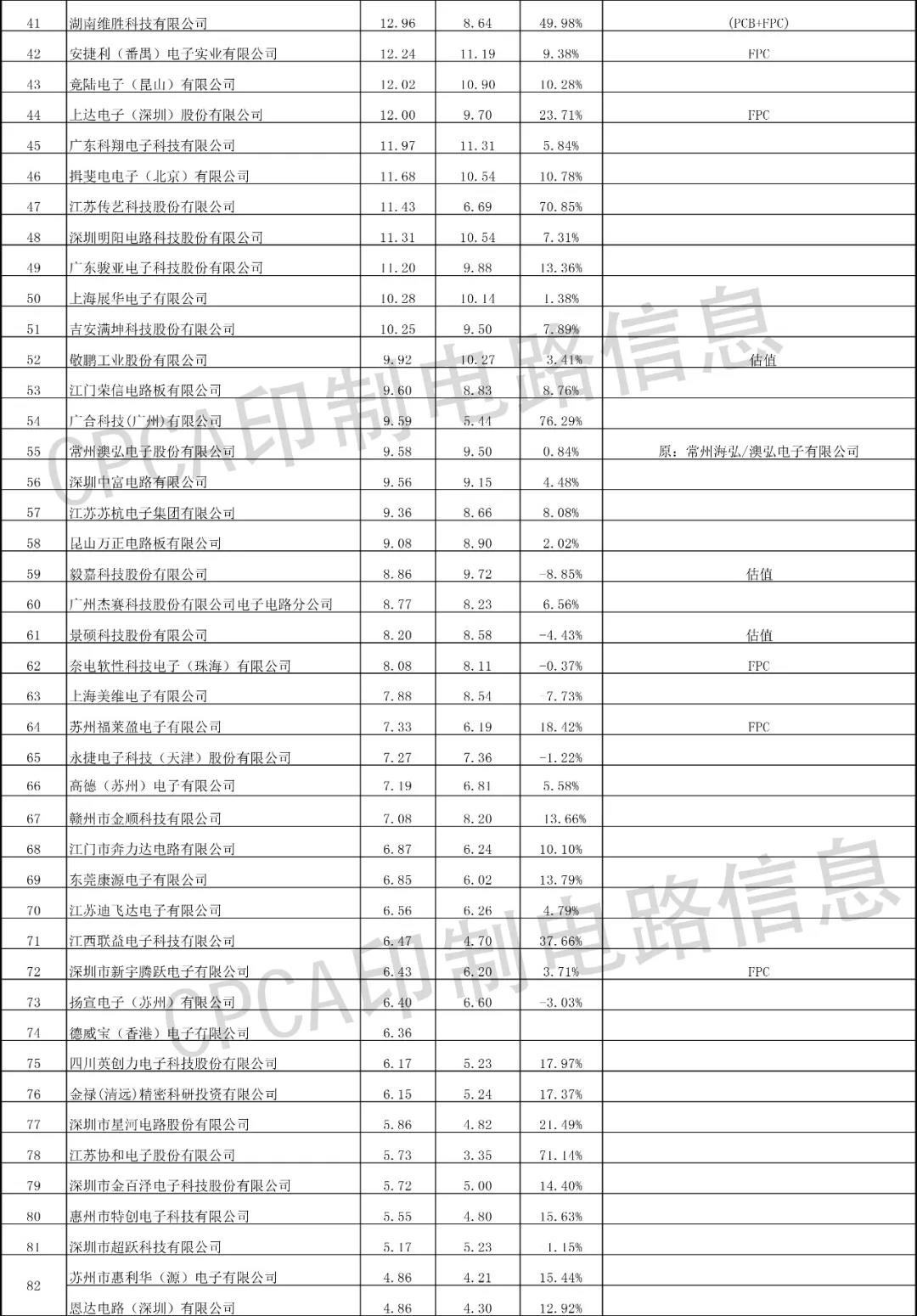 注:排行榜数据来源于CPCA印制电路信息