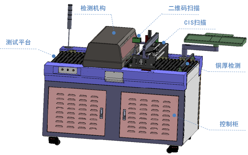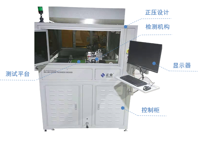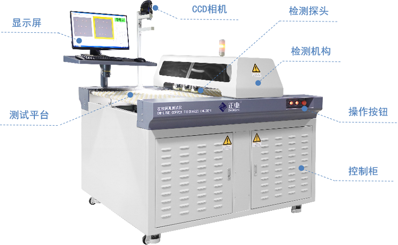 自动化检测平台搭载面铜探头正反面同时检测。