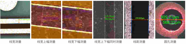 镜头使用3X以上的倍率进行测量时,线宽测量精度可达1μm,测量范围在16-2600μm之间,满足现代高密精细化线路板的线宽线距等测量需求。