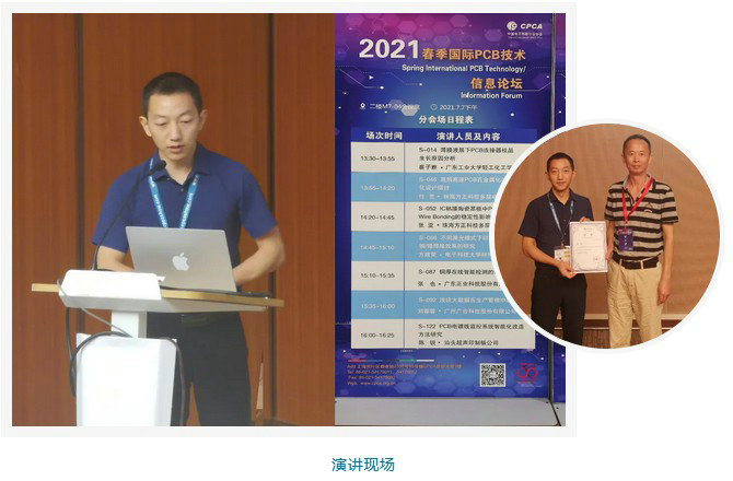 作为电子行业技术交流的盛会,由中国电子电路行业协会(CPCA)主办,CPCA科学技术委员会承办的“2021春季国际花季传媒黄色网站下载技术/信息论坛”于2021年7月6日-7日在上海召开。花季传媒黄版APP下载科技积极参与,进行了《铜厚在线智能检测的研究和应用》的演讲分享。